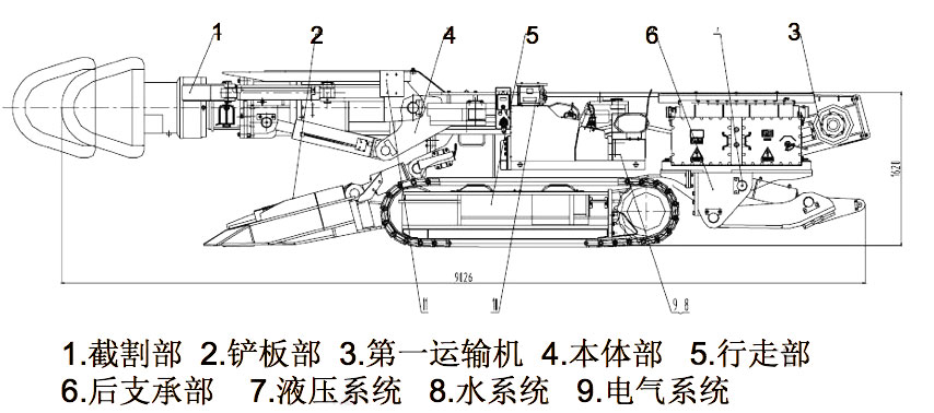 懸臂式掘進機是一種能夠?qū)崿F(xiàn)截割、裝載運輸、自行走及噴霧除塵的聯(lián)合機組。隨著回采工作面綜合采煤機械化的快速發(fā)展,煤礦對巷道掘進速度要求越來越高。為了提高采準(zhǔn)巷道的速度,懸臂式掘進機被大力研制并逐步發(fā)展完善。懸臂式掘進機要同時實現(xiàn)剝離煤巖、裝載運出、機器本身的行走調(diào)動以及噴霧除塵等功能,即集切割、裝載、運輸、行走于一身。它主要由切割機構(gòu)、裝載機構(gòu)、運輸機構(gòu)、行走機構(gòu)、機架及回轉(zhuǎn)臺、液壓系統(tǒng)、電氣系統(tǒng)、冷卻滅塵供水系統(tǒng)以及操作控制系統(tǒng)等組成。