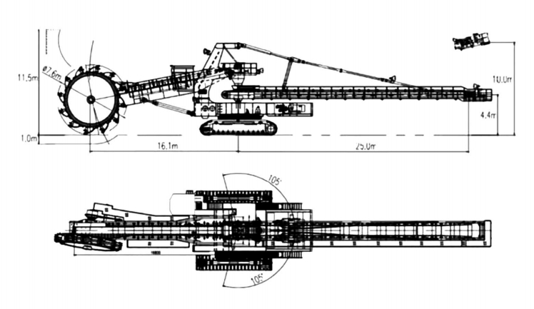 (1)輪斗挖掘機(jī)的連續(xù)生產(chǎn)率高,開(kāi)采量大服務(wù)年限長(zhǎng)可獲得良好的經(jīng)濟(jì)效益。